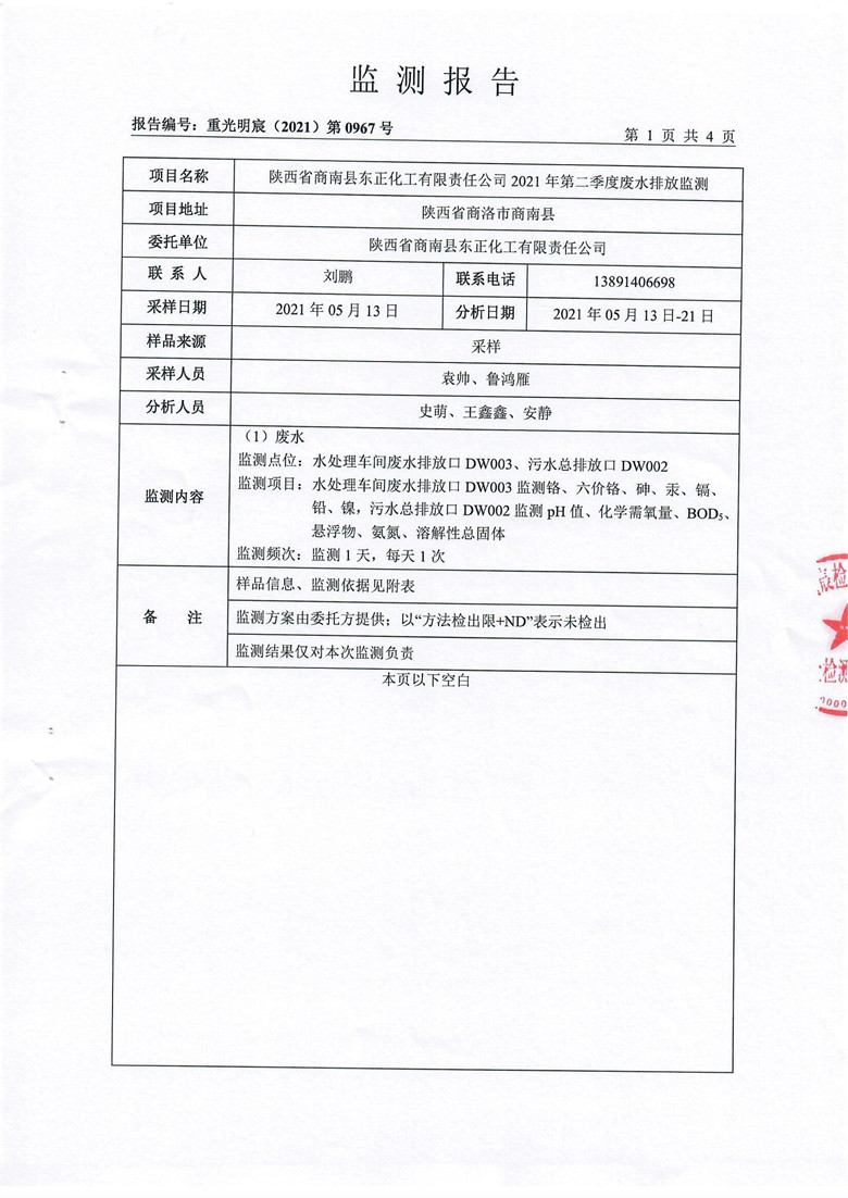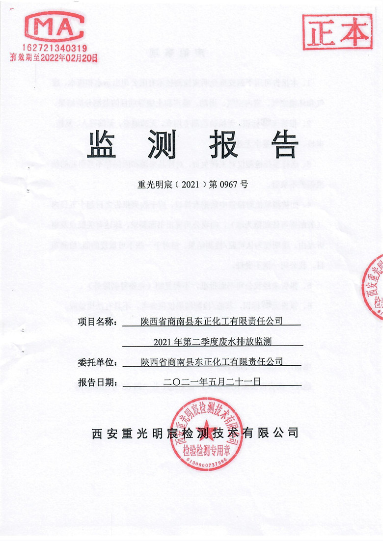 2021年第二季度废水监测报告_东正化工集团