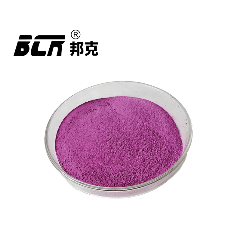 紫红色至暗红色粉末,易吸湿。
